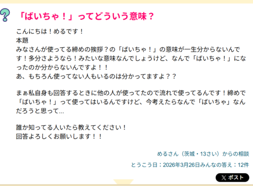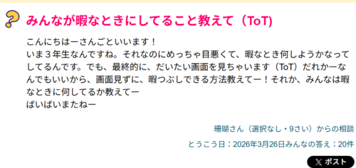 ただ匿名でキッズ達が色んなことを相談し合う場所みたいな。
