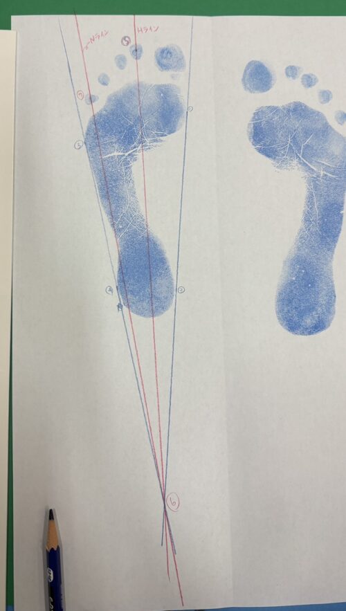 右の赤い線(Hライン)の内側に土踏まずがきているので